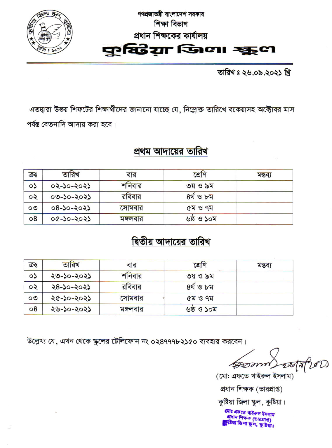 Regarding the payment of salaries for the month of September 2024 (including previous arrears).